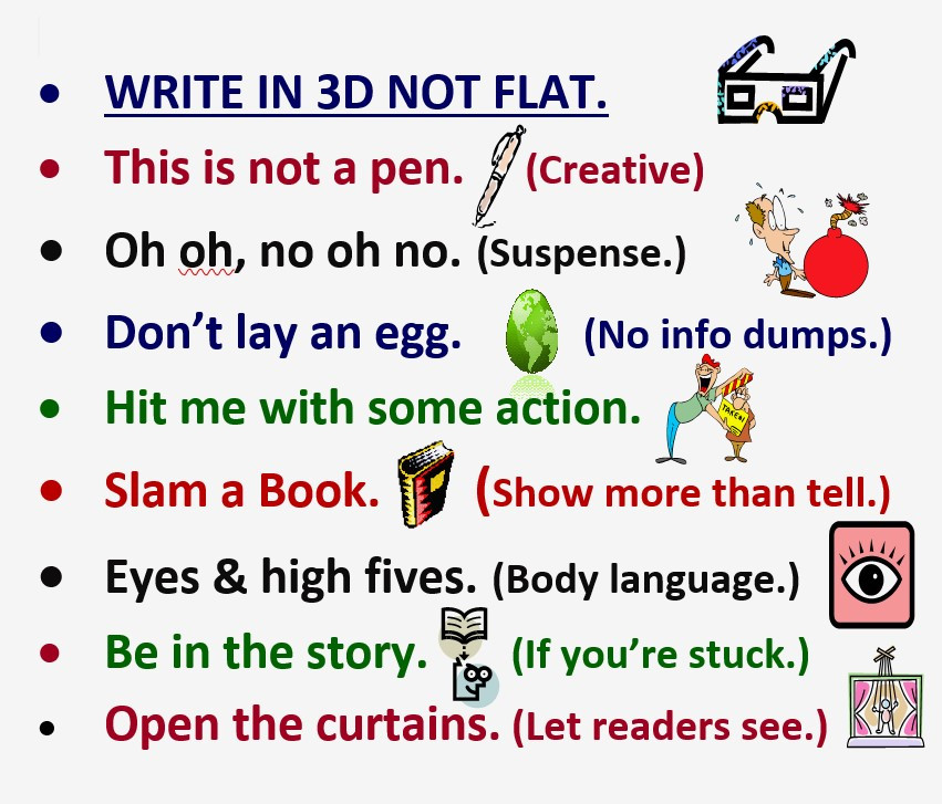 I learned much from the students. They taught me that a class in form, pacing and structure was boring! They taught me that a class about “Oh, oh. No oh no!” was fun. I tried my best to keep my classes interesting, fun and uncomplicated. One student told me that he realized being creative was thinking about something being “not what is but is what it isn’t.” Below is the result of my efforts to make classes that were fun, memorable, and helpful.