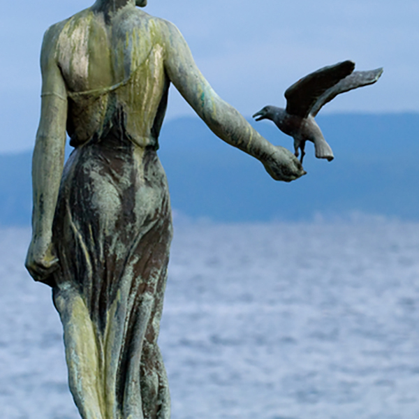 Sailers turned their heads to look at each other. When they looked back, Maia was gone. When they moored their ship, they commissioned craftsmen to carve a likeness of Maia, escorted on either side by wooden dolphins. At the bow, to guide their ship, both it and their story would travel so many lands so all who sail would know Maia’s and her story.
